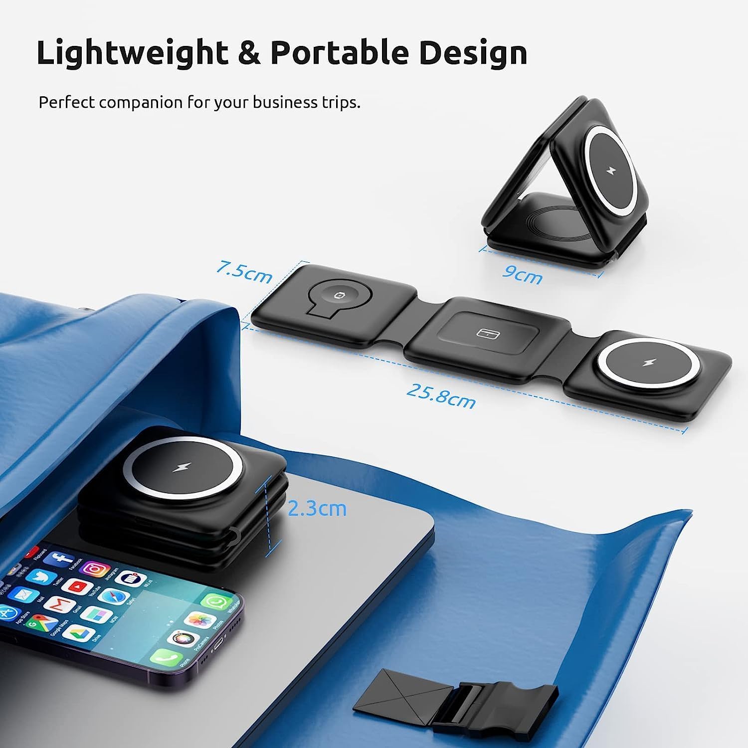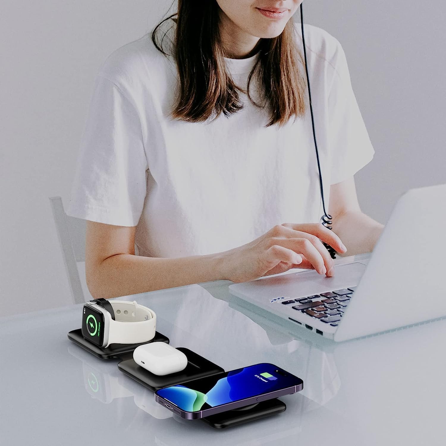 ✔ Charges phone, smartwatch & earbuds simultaneously